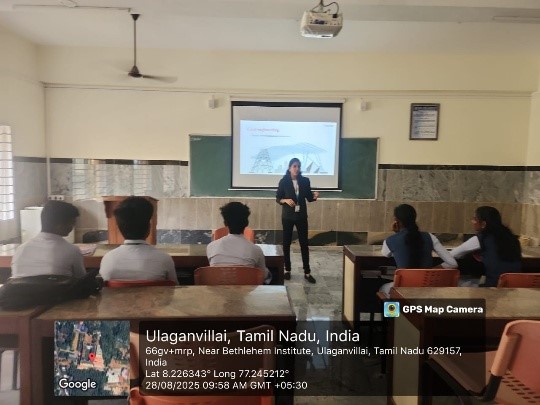 A guest lecture on “Real World Civil Engineering Insights” was conducted by the Department of Civil Engineering on 22nd September 2025 at 2:00 PM at Bethlaham Institute of Engineering. The session featured an inspiring address by the distinguished guest speaker, Er. S. Kannan, Managing Director of Anuk Traditech, who shared his rich practical knowledge and professional experiences from the field of Civil Engineering. His talk offered students a comprehensive understanding of the latest industry trends, the challenges faced in the profession, and the expectations awaiting future engineers. The students actively participated in the interactive session, making it a highly informative and motivating experience.